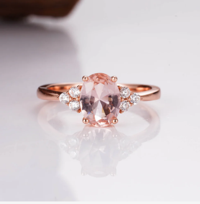 Set of six stones surrounding the center morganite give it some dimensions and also do not lack spirit of harmony. The center is supported by every stone and it radiates beautiful luster without casting shade on the primary jewel. It is a style that mixes craftsmanship and modesty, so the ring can appear even sophisticated both on and off.